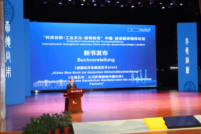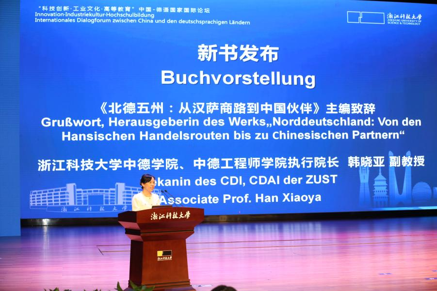 2025年10月19日,《北德五州:从汉萨商路到中国伙伴》一书在浙江科技大学发布,当天举行的“科技创新•工业文化•高等教育”中国-德语国家国际论坛为新书举办发布会,浙江大学出版社国际文化出版中心主任包灵灵、本书主编yl23411永利中德学院、中德工程师学院执行院长韩晓亚致辞。发布会由yl23411永利副校长梁荣华教授主持。