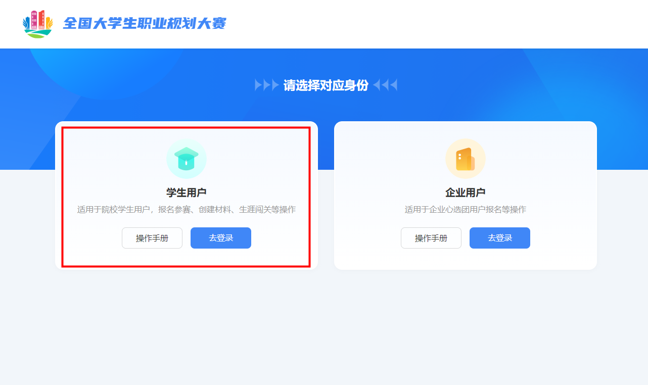 参赛选手平台首页-登录-选择学生用户身份-使用学信网账号登录。